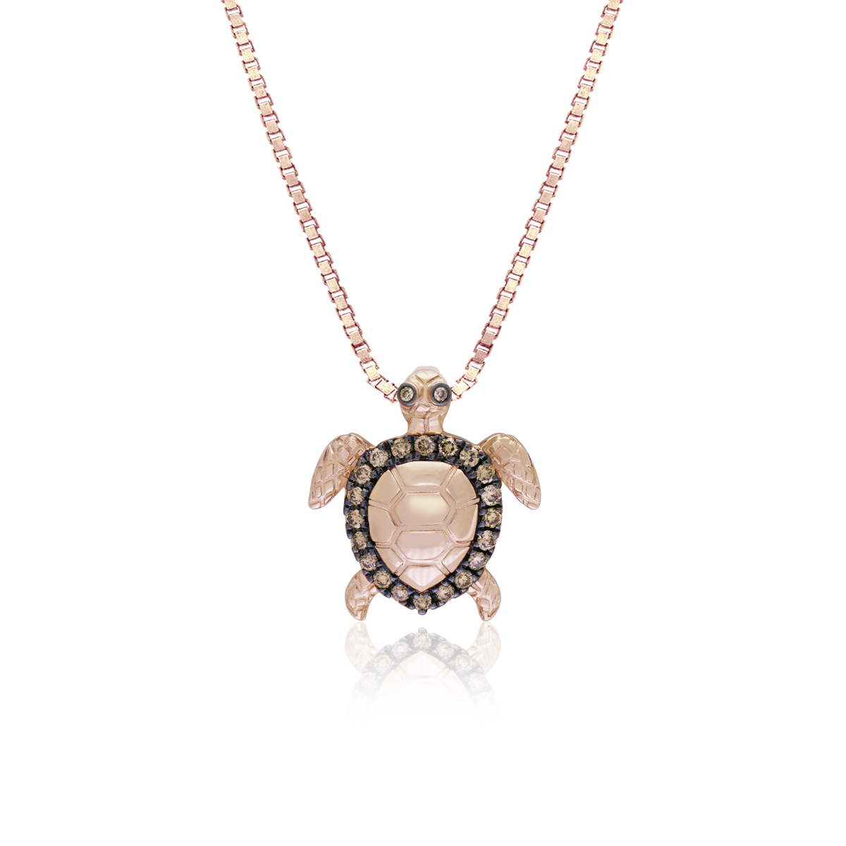 14K RG Koa Diamond Outline Turtle Pendant